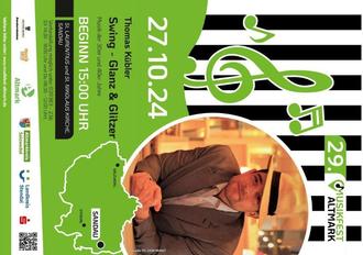 Am Sonntag, dem 27. Oktober 2024, erwartet die Besucher des 29. Musikfestes Altmark ein ganz besonderes Highlight: In der beheizten Winterkirche der St. Laurentius und St. Nikolaus Kirche in Sandau an der Elbe wird der renommierte Pianist und Sänger Thomas Kübler sein Programm „Swing – Glanz & Glitzer“ präsentieren. Die Veranstaltung beginnt um 15:00 Uhr, Einlass ist ab 14:00 Uhr.