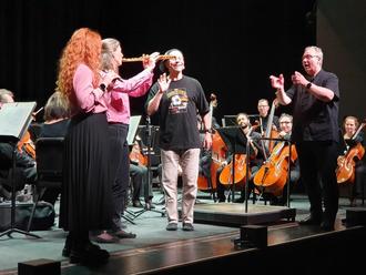 Die Instrumentengruppen traten nacheinander auf und brachten immer ein musikalisches Geschenk mit: die Streicher ein Lied zum Mitsingen, die Holzbläser ein Tanzstück, Harfe und Klavier eine Traummusik sowie Blechbläser und Schlagzeuger ein Stück zum Mitmusizieren. In einer folgenden Suite wurden dann die Instrumente unterschiedlich gemischt bis hin zum vollen Orchesterklang. Dabei erhielten auch einzelne, besondere Instrumente entsprechende Soli, wie das Fagott, die Bassklarinette und der Kontrabass.