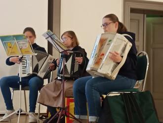 Vorlesetag - Romy, Jasmin und Hannah spielen Akkordeon