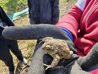 Beim Zaunaufbau Anfang März wurde gleich die erste Knoblauchkröte entdeckt.