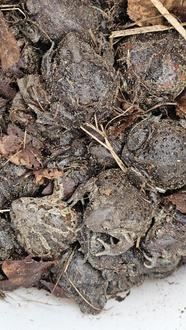 Knoblauchkröten mit den typischen roten Punkten im Fangeimer