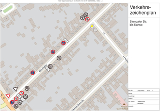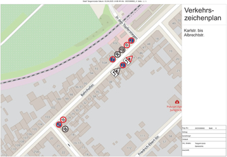 Der Vorschlag des Stadtrates, die parkenden Fahrzeuge in der Bahnhofstraße auf die andere Straßenseite zu verlegen, wird demnächst umgesetzt. Hieraus ergibt sich "ein Plus" an nutzbarer Parklänge von ca. 20m. Weiterhin verbessern sich die Sichtverhältnisse an der Einmündung zur Karlstraße, da sich auf der entsprechenden Fahrbahnseite dann zukünftig keine Fahrzeuge mehr befinden. Sie finden an diesem Artikel einen Verkehrszeichenplan der beschriebenen Maßnahme. Die in grau dargestellten Verkehrszeichen stellen die aktuelle, die bunten Verkehrszeichen stellen die zukünftige Beschilderung dar.
