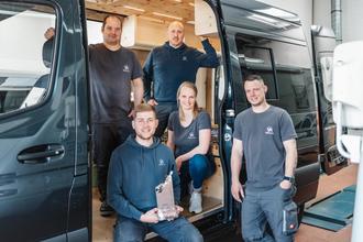 Der Gewinner des Wirtschaftspreises Altmark 2023 in der Kategorie »Existenzgründung«, Hannes Wißwe (vorn links) mit seinem Team.