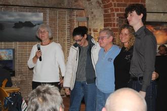 Die Stolpersteinverlegung fand mit einer Festveranstaltung in der Salzkirche einen würdigen Abschluss. Obwohl die Kleidung zahlreicher Gäste gewiss noch nass war, ließen sie sich das Konzert mit hebräischen und jiddischen Liedern und Instrumentalstücken und Gedichten, vorgetragen vom Gospelchor der St. Petrikirche Seehausen, nicht entgehen.