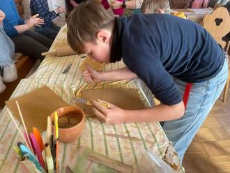 Die Stadtführerkinder gestalteten Windlichter in Form eines Burg-Turmes. Selbst wenn der Turm nicht ganz so gut gelingt, ist er eben eine urige Ruine! Die Jungen Stadtführer, die bereits über mehr Erfahrung verfügen, gestalteten getöpferte Bilder mit Ansichten von Tangermünde oder historischen Bauwerken der Stadt. Zu diesem Zweck verfügen sie bereits über einen reichhaltigen Fundus an Abdruck-Formen, die sie zum Töpfern benutzen können.