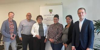 V.l.n.r: Holger Peach, Marcus Pollit, Ministerin Petra Grimm-Benne, Jana Teichler, Kristin Brauer und Franz-Xaver Kunert