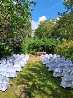 Der Hochzeitsplatz im Garten erfreut sich großer Beliebtheit.