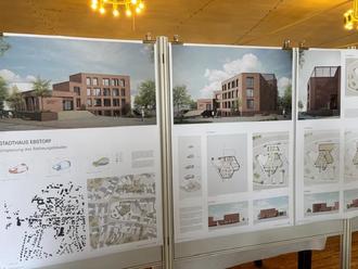 Am 5. Februar präsentierten 60 Studierende mit ihren sechs Professoren im Gasthaus Zum Unteren Krug ihre Masterarbeiten: neun verschiedene Entwürfe für das neue Rathaus im Klosterflecken. Kein Entwurf beinhaltete den Abriss und Neubau, sondern maximal eine Teilentnahme, Ergänzungen und Veränderungen, die nach 50 Jahren auch angebracht scheinen. Zuerst wurden die Entwürfe in einer internen interfraktionellen Sitzung vorgestellt, dann öffnete sich das Forum für Interessierte aus dem Klosterflecken.