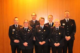 Geehrte, Beförderter, Verabschiedete und Gewählter mit Ortsbrandmeister und Stellvertreter.