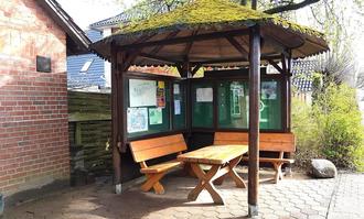 Zwei Eichenbänke und ein Holztisch laden zum Verweilen ein. Die Schützen des SCL 69 und sicherlich auch die Schulkinder, die auf den weiteren Bus warten, können sich freuen bei Regen Schutz im Trockenen zu finden. Ein großes Dankeschön an die fleißigen Helfer.