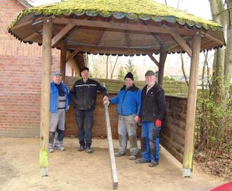 Der erste Vorsitzende des SCL 69, Hans-Joachim Bütow, machte die Planung mit seinen Helfern Martin Bergmann, Rüdiger Bütow, Robert Hahn und Robert Kalis. Die fünf Männer entfernten Büsche, ein gerader Unterstand wurde geschaffen, auf dem Robert Kalis die Pflasterarbeiten ausführen konnte. Der Pavillon wurde aufgestellt, das Moos entfernt und neu gestrichen, wobei auch Norbert Sauk mit unterstützte. Die beiden Schaukästen der Gemeinde Schwienau und des Dorfes Linden wurden mit eingebaut und haben so einen guten Platz bekommen.