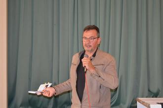 Lieber das Mikro in die Hand als am Rednerpult: Heiko Senking bei der Vorstellung seines Buches.