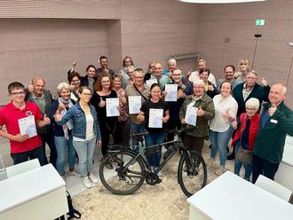 Samtgemeindebürgermeister Martin Feller, der als Stadtradel-Star die gesamten 21 Tage aufs Autofahren verzichtet hat, bedankt sich bei allen Teilnehmerinnen und Teilnehmern – und auch bei seiner Mitarbeiterin Harriet Götze. „Es war nicht immer leicht, meine Termine zu koordinieren, da ich jede Verabredung mit dem Fahrrad oder Zug absolvieren musste.“ Doch auch außerhalb setzt er aufs Fahrrad und motiviert alle Stadtradlerinnen und -radler nicht nur innerhalb der drei Wochen aufs Fahrrad zu setzen, sondern das Rad dem Auto vorzuziehen: „Wir haben schließlich nur in den drei Wochen 11.446,81 Kilogramm CO2 eingespart.“