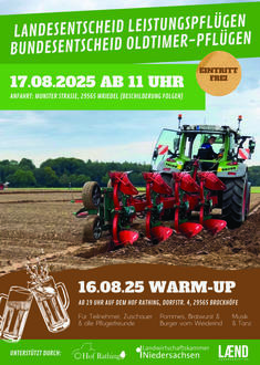 Im August 2025 wird der landwirtschaftliche Betrieb der Familie Rathing in Brockhöfe zum Mittelpunkt des deutschen Pflügersports. Am 16. und 17. August finden dort gleich zwei bedeutende Wettbewerbe statt: der niedersächsische Landesentscheid im Leistungspflügen sowie der Bundesentscheid der Oldtimerpflüger.
