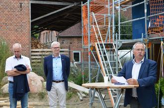 Samtgemeindebürgermeister Martin Feller lobte die nachhaltige Bauweise des Gebäudes. Er schaute zurück auf die Ausschreibung, bei der die Samtgemeine unterstützte, und stellte fest: „Das Ausschreibungsergebnis war besser als die Prognose, vielleicht gibt es beim Bau eine Trendumkehr.“