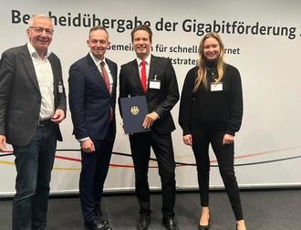 Einen Scheck über 30,3 Millionen Euro nahm der Leiter des Eigenbetriebs Breitbandausbau des Landkreises Celle, Daniel Eckardt, aus den Händen von Digital- und Verkehrsminister Dr. Volker Wissing entgegen. Celles Landrat Axel Flader, der für den Termin beruflich verhindert war, freute sich über die Förderung des Bundes: „Ohne schnelles Internet wird es künftig immer schwieriger werden, egal ob im Wirtschafts- oder im Alltagsleben. Daher ist der Ausbau von grauen Flecken nach der Erschießung der weißen Flecken aus meiner Sicht ein Teil der Daseinsvorsorge.“