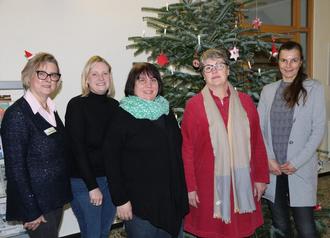(v.l.n.r.) Diana Habermann v. Familienbüro mit den Hebammen Daniela Laux, Simone Michaelis, Antje Meier und Katja Nowack