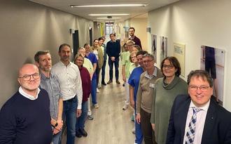 Landrat Axel Flader (im Bild vorne rechts) bedankte sich im Namen aller Celler und zusammen mit dem Vorstandsvorsitzenden Dr. Martin Windmann (vorne links) für die gute Arbeit des Krankenhauses bei Teilen des Leitungsteams des AKHs.