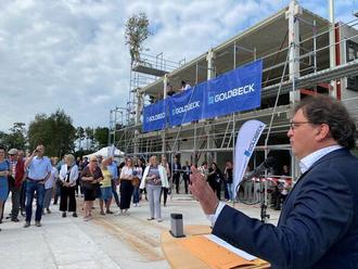 Landrat Axel Flader begrüßte zahlreiche Gäste beim Richtfest für das neue Hölty-Gymnasium. Auch 2024 gehen die Investitionen in Gebäude des Landkreises weiter.