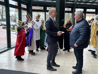 Die Sternsinger der katholischen Pfarrgemeinde St. Ludwig hat Erster Kreisrat Gerald Höhl heute (4. Januar) beim Landkreis Celle empfangen, die als Heilige Drei Könige um Spenden baten. Mit dem Kreidezeichen 20*C+M+B*24 brachten Sie den Segen „Christus segne dieses Haus" in das Kreishaus und sammelten für Not leidende Kinder in aller Welt. Die Sternsinger stehen dieses Jahr unter dem Motto „Gemeinsam für unsere Erde – in Amazonien und weltweit“. Die Aktion nimmt dabei den Raubbau an der Natur in der ganzen Welt, speziell aber hier im Gebiet um den Amazonas, in den Fokus.