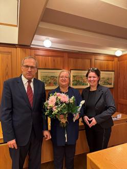 Dabei blickte Maren Pritchard auf ihre vielfältigen Tätigkeiten zurück: "Ich habe engagierte Menschen kennengelernt, mutige Stimmen gehört, schwierige Situationen begleitet, aber auch viele Fortschritte gesehen. Ich verabschiede mich heute mit dankbarem Herzen." Bürgermeisterin Claudia Dettmar-Müller dankte Maren Pritchard für ihren unermüdlichen und leidenschaftlichen Einsatz für Gleichheit und Gerechtigkeit: "Sie haben in Ihrer Rolle als Gleichstellungsbeauftragte nicht nur wichtige Themen angestoßen, sondern Sie haben uns auch gelehrt, dass Gleichstellung nicht nur ein Schlagwort, sondern eine grundlegende Voraussetzung für eine faire und offene Gesellschaft ist."