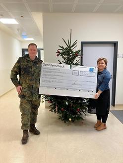 (Foto: Oberstleutnant Heinz von der Truppenübungsplatzkommandantur u. Nina Kollenberg-Buhr, Leitung der Kita Konfetti bei der Spendenübergabe. Copyright Stadt Bergen)