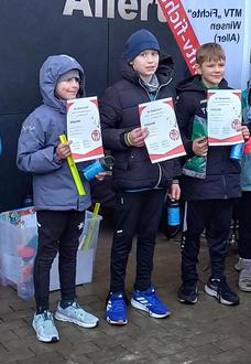 Malte Hohls belegte im Rennen bis 9 Jahre über 1500 m nach einem packenden Endspurt um 1 Sekunde hinter dem Sieger Platz 2. Seine Trainingskollegen Hennes Knoop, Hendrik Hohls, Fiete Ohlhoff und Arne Habermann mussten die 3000 m Strecke bewältigen. Hier konnte man bei allen bereits die Fortschritte des Crosstrainings feststellen. In der Wertung der Altersklasse 10-15 Jahre siegte Hennes vor Hendrik /3., ihnen folgten Fiete Ohlhoff /4. Und Arne Habermann/5. Bei den Schülerinnen kam Alea Cordes auf Platz 2 und Enna Krüger auf Platz 3. Sam und Tamme Cordes vervollständigten das Schülerfeld mi Platz 7+8.