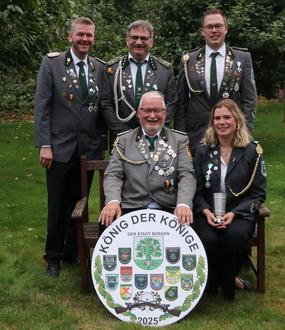 König der Könige 2025, v.l.n.r. Walter-Christoph Buhr, Karsten Brandt, Hansi Koch, Johann-Gregor Fürst, Wiebke Ahrens. Copyright Stadt Bergen.