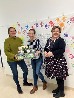 Bergen, den 21.11.2025: "Man muss Erlebnisse schaffen, um darüber reden zu können." - Mit diesen Worten überreichte die Berger Kinderärztin Nicole Rüdiger gemeinsam mit ihrer Kollegin Meike Schumacher einen prall gefüllten Präsentkorb an Nina Kollenberg-Buhr, Leiterin der Kita Konfetti.