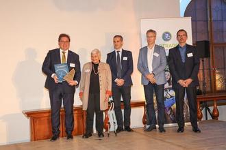 Bei der Preisverleihung: v.l.n.r. Axel Flader (Landrat Landkreis Celle), Gunda Krauss (Stadtratsmitglied München), Christian Heck (Bayerisches Staatsministerium für Wohnen, Bau und Verkehr), Georg Dunkel (Mobilitätsreferent Landeshauptstadt München), André Muno (Geschäftsführer Klima-Bündnis Services)