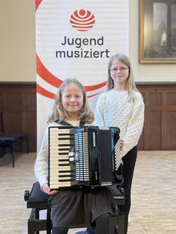 Die Geschwister Alessandra Weber am Akkordeon und Kathleen Weber (Klavier) aus der Wertung Akkordeon-Kammermusik