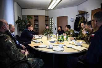 Landrat Axel Flader mit den Vertreter der Nato am Montag beim Austausch über die zivil-militärische Zusammenarbeit