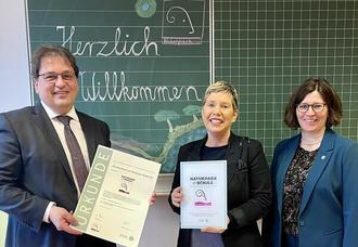 Die Grundschule am Heidesee Müden (Örtze) erhielt am 12. März die bundesweite Auszeichnung „Naturpark-Schule“ des Verbandes der Deutschen Naturparke (VDN). In einer kleinen Feierstunde überreichte Landrat Axel Flader die Plakette und die Urkunde an die Schulleiterin der Müdener Grundschule Heike Conrads.