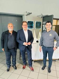 Landrat Axel Flader (mitte) zusammen mit den Organisatoren Nuri Delaf (links) und Rezan Uca bei seinem Besuch des Neujahrsfestes
