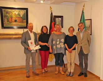 Stadt Bergen - Im Bild von links nach rechts: Wolfgang John (bisherige Schiedsperson Bergen I), Bürgermeisterin Claudia Dettmar-Müller, Maren Lawn und Julia Skelton (neue Schiedspersonen) und Richter Thomas Lekefett vom Amtsgericht Celle
