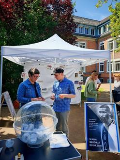 Im Rahmen des abschließenden Turniers auf dem Soccer-Court sowie verschiedener Stationen auf dem Schulhof zu Fragen von Diskriminierung und Ausgrenzung im Fußball, rückten Fairness und Miteinander in den Vordergrund. In gemischten Teams traten Teilnehmer*innen der Anne-Frank-Friedenstage sowie Schüler*innen des Christian-Gymnasiums gegeneinander an. Vorab aber begrüßte Bergens Bürgermeisterin Claudia Dettmar-Müller alle Anwesenden und zog Resümee "Ich hoffe, dass ihr in dieser Woche erfahren habt, wie wichtig es ist, aufeinander zuzugehen und euch für andere Menschen und Kulturen zu interessieren."