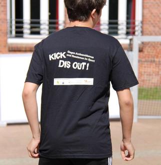 Ein Zeichen setzen: Die Turnier-Shirts mit der Aufschrift "Kick Dis Out" wurden von der Partnerschaft für Demokratie in Bergen und der Bürgerstiftung Bergen gesponsert.