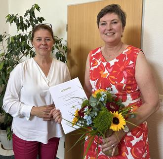 Bürgermeisterin Dettmar-Müller und Susanne Slottke, die ihr 40-jähriges Dienstjubiläum begeht.
