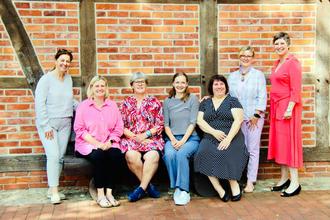 Stadt Bergen - v. l. Bürgermeisterin Claudia Dettmar-Müller, die Hebammen Daniela Laux, Antje Meier, Svenja Franz und Simone Michaelis sowie von der Stadt Bergen Diana Habermann und Susanne Slottke (es fehlt: Hebamme Katja Nowack)