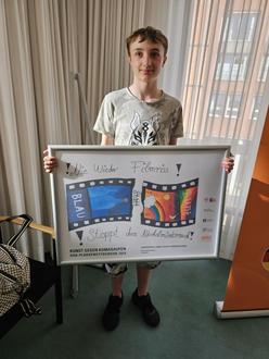 Zur Siegerehrung des landesweiten Malwettbewerbs „Bunt statt Blau“ durfte am Montag, den 13.05.2024 unser Schüler Kilian Barthel aus der 7. Klasse fahren. Diese „Aktion gegen Komasaufen“ wurde von der DAK ins Leben gerufen und fand nun schon zum 15. Mal statt.