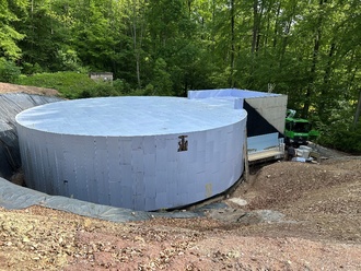 Die Herstellung der Behälteraußenabdichtung sowie die Montage der Außendämmung ist abgeschlossen.