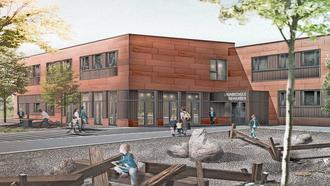 Ansicht des neuen Gebäudes nach Fertigstellung.