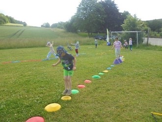 Den Auftakt machte am Montag, den 16. Juni, ein sportliches Highlight für die ältesten Kinder der Kita, die sogenannten „Schulspatzen“. Gemeinsam mit Frau D. Loose vom Kreissportbund und den Maskottchen „Hoppel und Bürste“ absolvierten die Kinder das Minisportabzeichen. Auf dem Sportplatz war ein abwechslungsreicher Bewegungsparcours aufgebaut, der zunächst unter Anleitung erkundet und anschließend kreativ von den Kindern selbst umgestaltet wurde. Eine tolle Erfahrung, bei der nicht nur Koordination und Ausdauer gefragt waren, sondern auch Fantasie und Teamgeist.