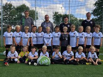 Trainer René Renner, Manfred Kommisin und Chris Winkelmann dankten dem kommunalen Energieversorger für die Unterstützung der Jugendarbeit. Nur durch das Engagement von Firmen wie der EAM sei es möglich, den Nachwuchs erfolgreich zu fördern. „Die neuen Trikots stärken den Mannschaftsgedanken und werden den Kids noch einmal einen zusätzlichen Motivationsschub für die anstehenden Spiele geben“, freute sich Renner. Der Verein hat seit längerer Zeit wieder eine G-Jugend-Mannschaft. Die jüngsten Nachwuchsspieler freuen sich darüber, nun im einheitlichen Vereinsoutfit auflaufen zu können. Neben dem sportlichen Engagement leisten die Vereine auch eine wichtige gesellschaftliche Aufgabe und fördern ein respektvolles, freundschaftliches Miteinander.