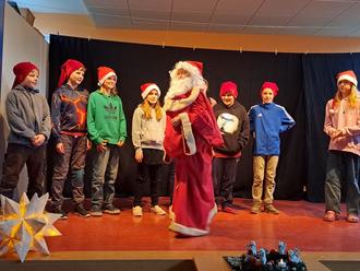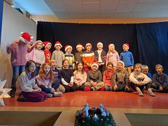 Es war der Auftakt eines bunten Programmes mit mal besinnlichen, mal witzigen Gedichten der Klasse 4, gekonnten Darbietungen auf dem Metallofon und auf der Geige, bewegtem Chorgesang des Schulchores und einer turbulenten Theater- und Tanzeinlage der dritten Klasse. Alle freuten sich dann auf das sagenhafte Buffet, das der Förderverein organisiert hatte, und auf das gesellige Zusammensein. Doch zunächst sagen alle Kinder mit der bunten Gästeschar voller Inbrunst „Alle Jahre wieder!“ und die ein oder andere Träne der Rührung wurde heimlich weggewischt.