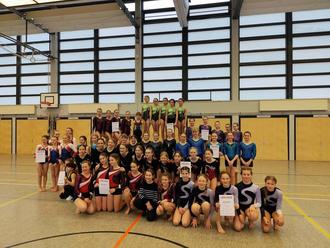 Unsere Schülerinnen, die sich ein halbes Jahr in der AG auf diesen Wettkampf vorbereitet haben und zum ersten Mal an einem Turnwettkampf teilnahmen, zeigten trotz Nervosität, alle Übungen sehr souverän, mit viel Freude und Spaß. Die Mädchen erturnten sich für die Carl-Friedrich-Gauß Schule, gegen eine sehr sehr starke Konkurrenz, den 11. Platz.