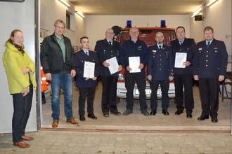 Geehrt wurden auf Beschluss des Rates der Gemeinde Gleichen aufgrund langjähriger Führungsaufgaben in der Feuerwehr Ralf Linder und Heiko Fahrenholz. Sie wurden in das Ehrenbeamtenverhältnis übernommen und zu Ehrenortsbrandmeistern ernannt.