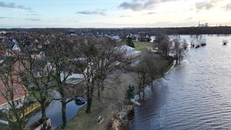 Seit den starken Regenfällen kurz vor Weihnachten und auch danach ist in Weyhausen vielerorts nichts mehr, wie es vorher war. Alle Wiesen entlang der Aller und der Kirchweg (siehe Foto) wurden vom Flußwasser überspült, ungezählte Keller und Schächte im Weyhäuser Altdorf liefen voll. Die Bewohner halfen sich selbst mit Pumpen und Wassersaugern, manchmal half auch die Feuerwehr. Die WEB (Wolfsburger Entwässerungsbetriebe) kämpften mit dem teilweisen Zusammenbruch der Schmutzwasserentsorgung durch fehlerhafte Hausanschlüsse. Das Hochwasser kam nach starken Regenfällen in den Tagen zuvor am 24. Dezember und begleitet uns seitdem noch immer. Die Böden sind so gesättigt, dass das Wasser nur langsam in tiefere Schichten absinkt. Bitte lesen Sie weiter auf Seite 3.