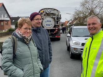 Spezialeinsatz-Kommando der WEB... Von links: Svenja Picht-Spannuth (Abtleilungsleiterin Grundstücksentwässerung), Mathias Fritz (Geodaten-Experte) und Dr. Gerhard Meier (WEB-Chef)