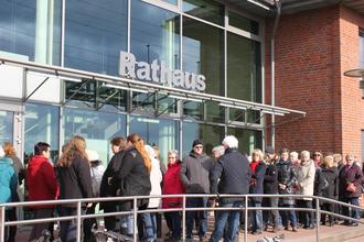 Beim Anstellen für die koastenlosen Einrittskarten zum Internationalen Frauentag motiviert Astrid Wonde auch schon mal die Massen...